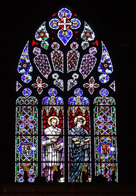 Je me dirige vers la station de métro "Verdaguer" afin de me rendre dans la vieille ville de Barcelone... J'admire au passage, au 102, Passeig de Sant Joan, de belles sculptures de la Vierge et l'enfant... La première est une oeuvre d' Enric Monjo, sculpteur catalan (1896-1976).